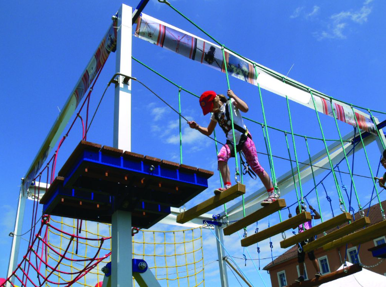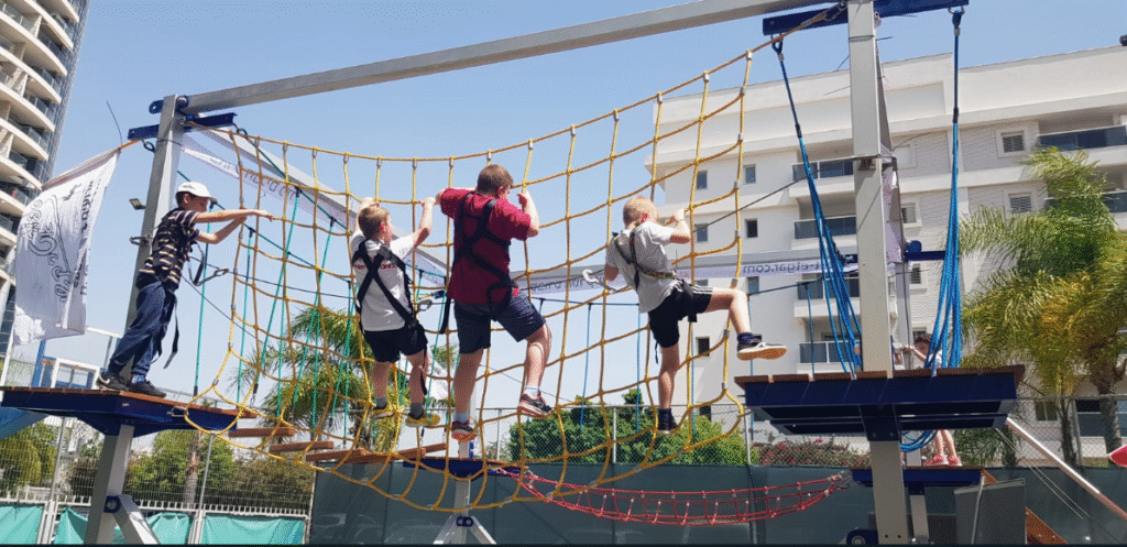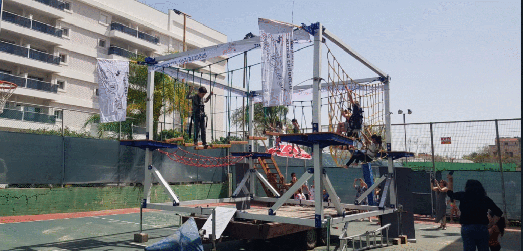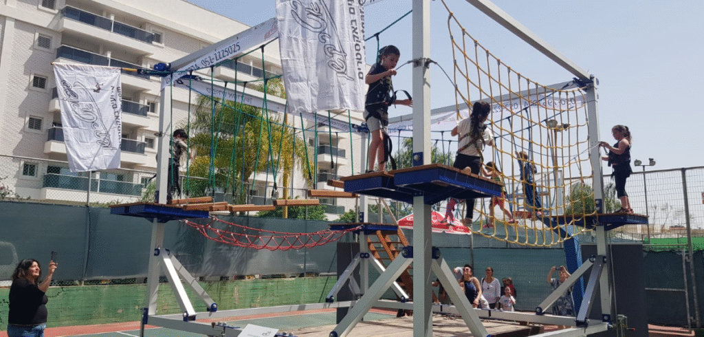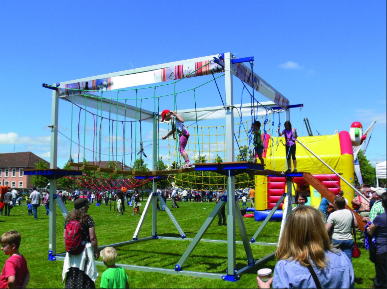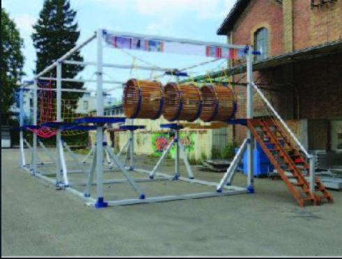 פארק חבלים נייד על נגררת, קונסטרוקציה,טראסים,מודולרי.